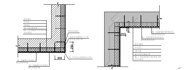③所有陽角部位,面層聚合物抗裂砂漿均應作成尖角,不得做成圓弧。