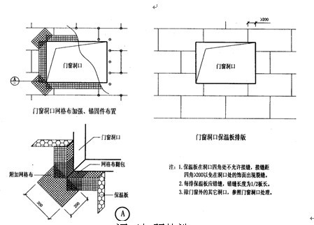 ⑤門窗口、雨蓬、勒角、變形縫處粘貼時應做翻包處理,粘結寬度為100mm。